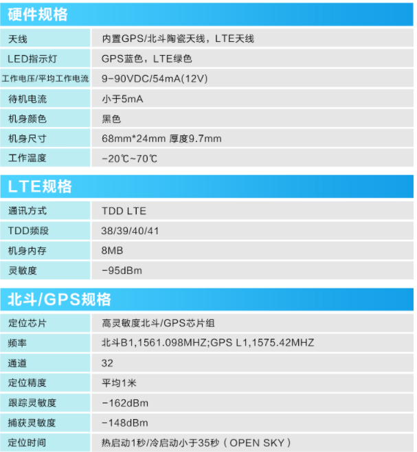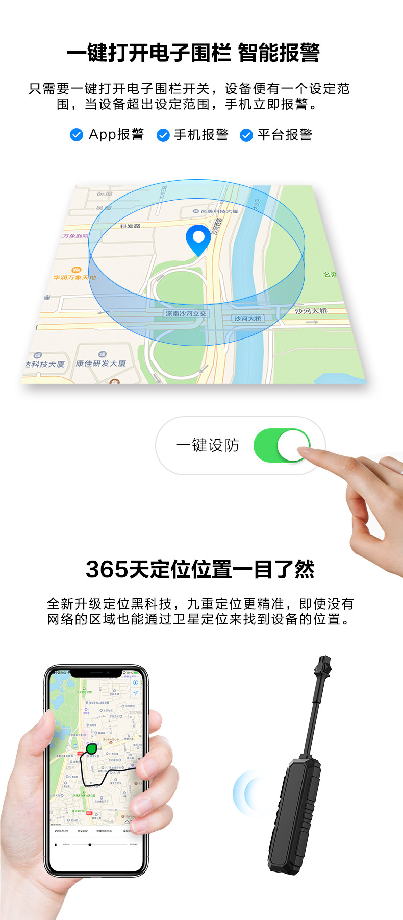 产品概述:4G09是一款专门为汽车、摩托车、电动自行车而设计的通用版微型定位终端,体积小巧,便于隐蔽安装,同时融合GPS/北斗卫星定位以及TDD-LTE通讯技术,具有实时定位追踪、轨迹回放、电子围栏、超速报警等功能。