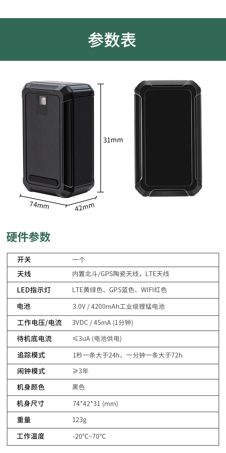 产品规格:74(L)X42(W)X31(H)(mm)